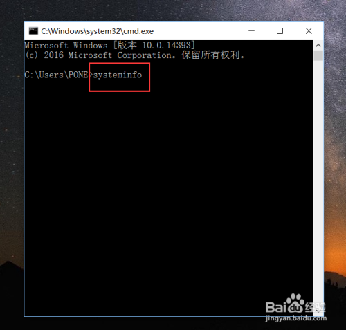 在号令行窗口页面中输入“systeminfo”,并按下回车键,查看页面中展示的系统信息。