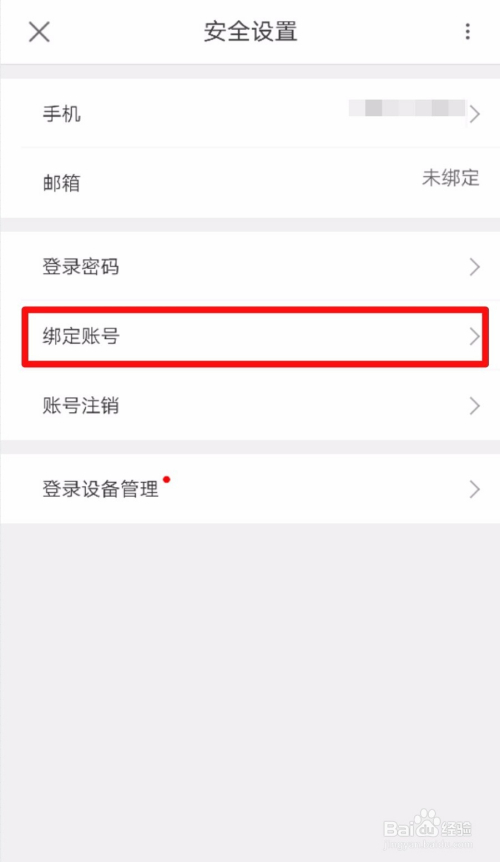 我们进入到【平安设置】的页面之后,点击【绑定账号】的功能选项。如下图