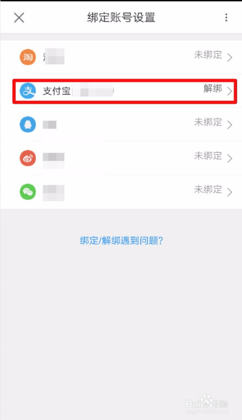 接下来进入到【绑定账号设置】的页面之后,点击需要解绑的已绑定账号。如下图