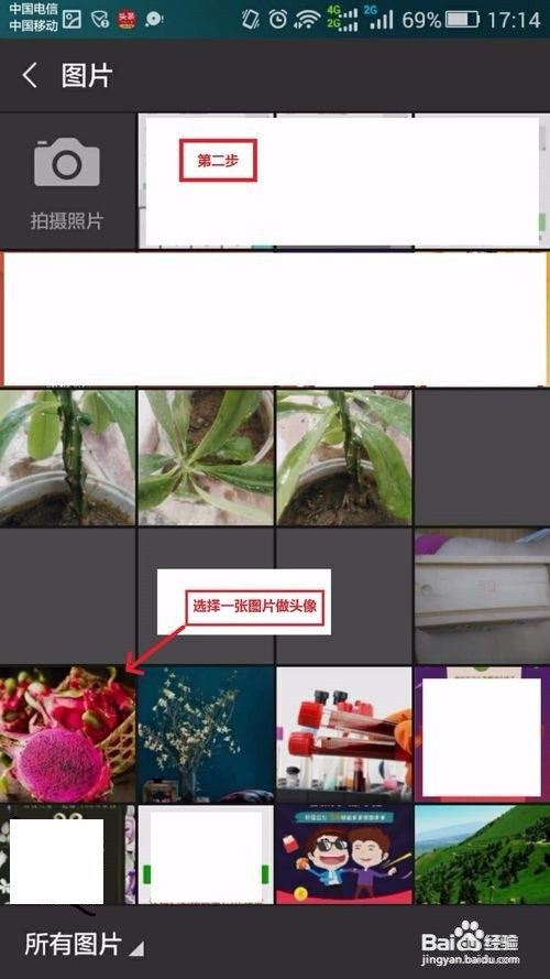 第二步:再界面中选择一张图片做为本身的头像。在这里以选择火龙果为例子。