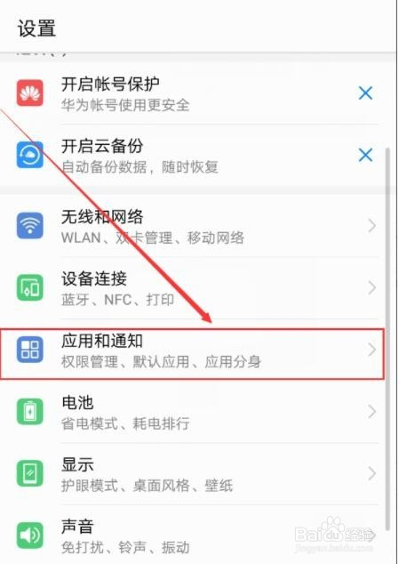 找到设置中的应用或者通知的功能,一般环境是应用办理