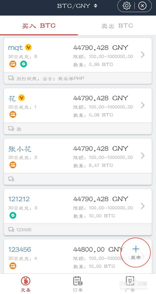 当作为“通俗商家”后,在OTC买卖界面右下角点击“发布”