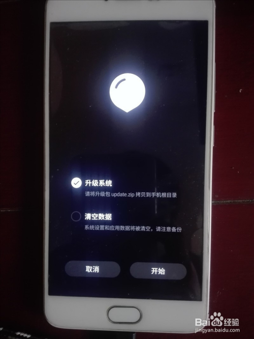 手机毗连充电线,过一会弹出,提醒进级界面,点击打消。