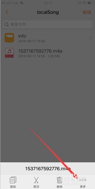 依次找到打开路径所有文件>>>android>>>data>>>com.tencent.karaoke>>>files>>>localsong,可以在该文件夹下看到方才的灌音,长按该音频文件。
