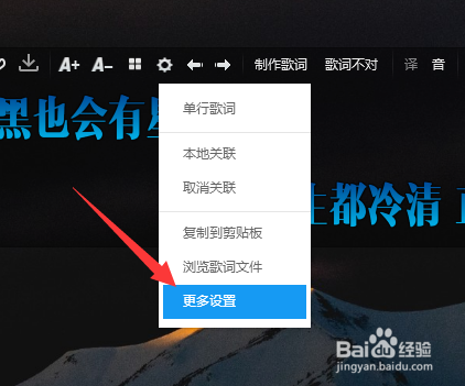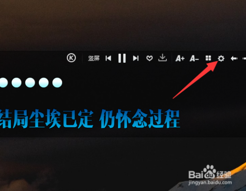 然后鼠标移动桌面歌词上面,点击齿轮状的设置图标。
