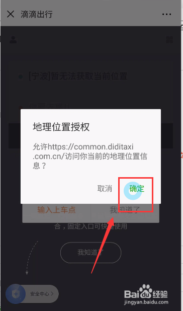 启用滴滴出行需要挪用手机定位,点击确定许可,如下图所示