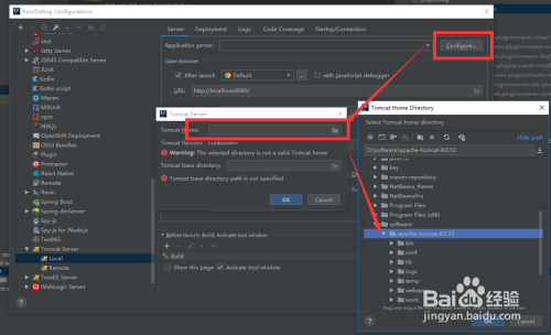 5. 点击【Configure...】,弹出Tomcat Server窗口中覅及Tomecat Home右侧的文件夹图标,选择当地的Tomcat办事器