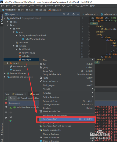 7. 回到软件中,选择jsp或者html,右键菜单中选择【Run。。】