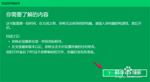 接着会打开一个 回退到时早期版本 - 你需要领会的内容 对话框:
