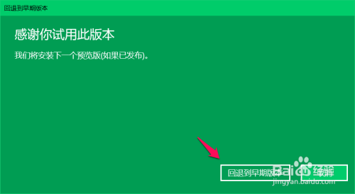 我们在上一步点击:回退到早期版本今后,电脑主动从头启动,启动后,进行版本回退操作,显示: