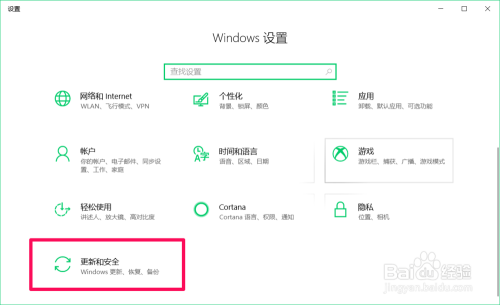 在更新和平安窗口中,我们点击窗口左侧的【恢复】;