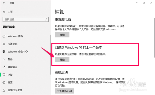 系统版本回退的前提是:前一版本系统进级时候没有跨越10天或者系统盘中的Windows.old文件还没有删除。