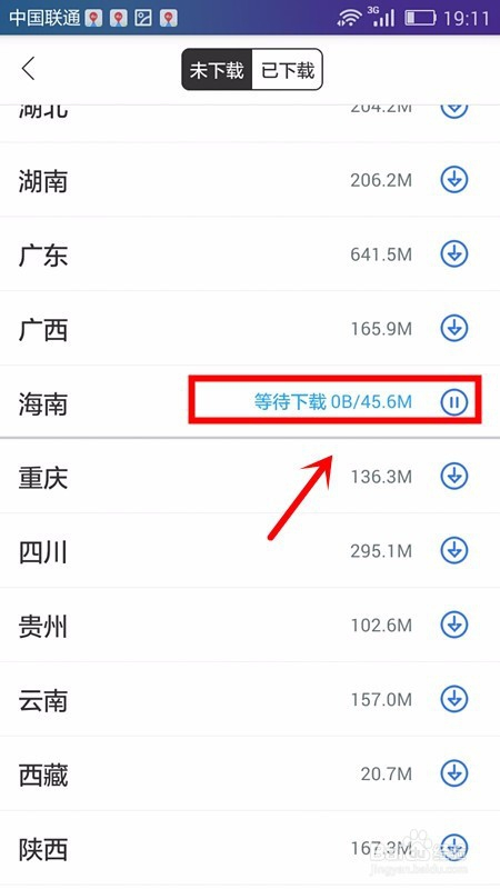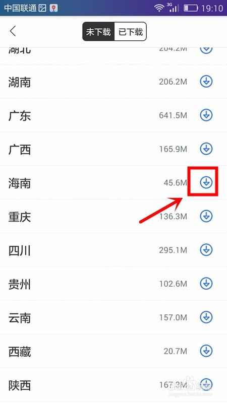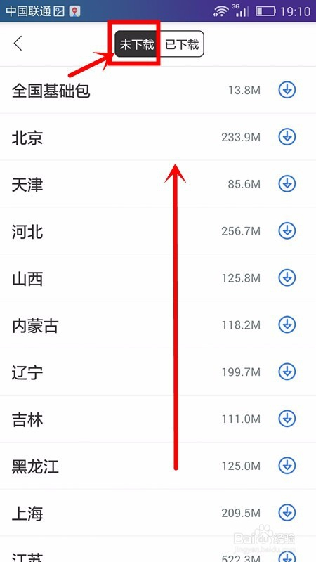此时可以在未下载页面中看到很多的资本供我们下载利用,我们经由过程手指在手机屏幕上标的目的上滑动查找要下载的城市地图资本;