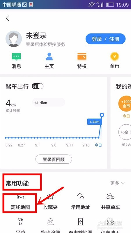 这时即可打开该应用的小我中间页面,在该页面上的常用功能板块中可以找到离线地图选项并点击进入该功能;