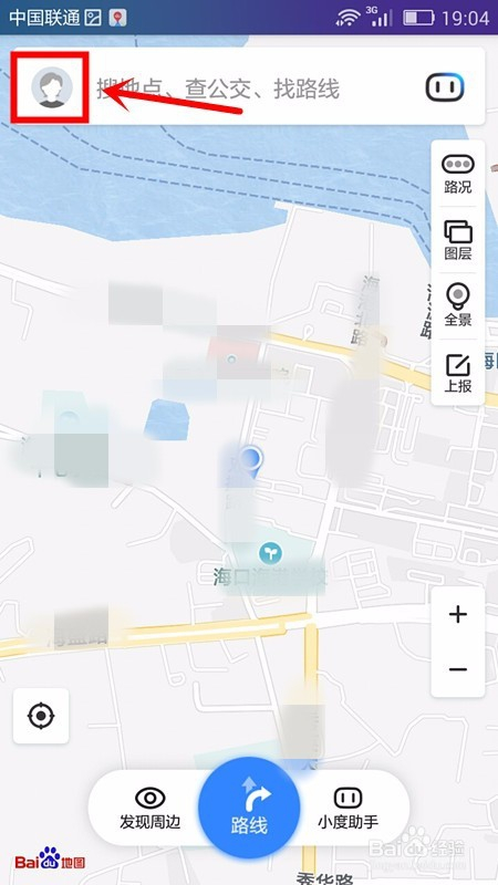 在打开的地图页面中点击选择左上角的头像;