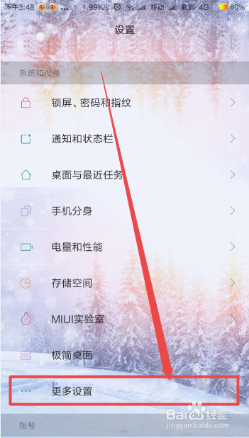 然后在打开的设置页面中找到 更多设置 选项,点击进去。