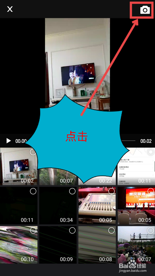 也可以点右上角的相机图标,拍摄新的视频。如图所示