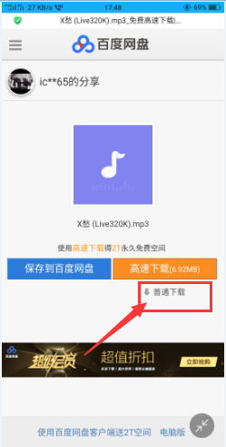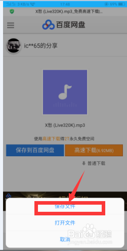 点击下载(手机上若是有百度云App的话也可以保留到百度云,这边讲下直接下载到手机);