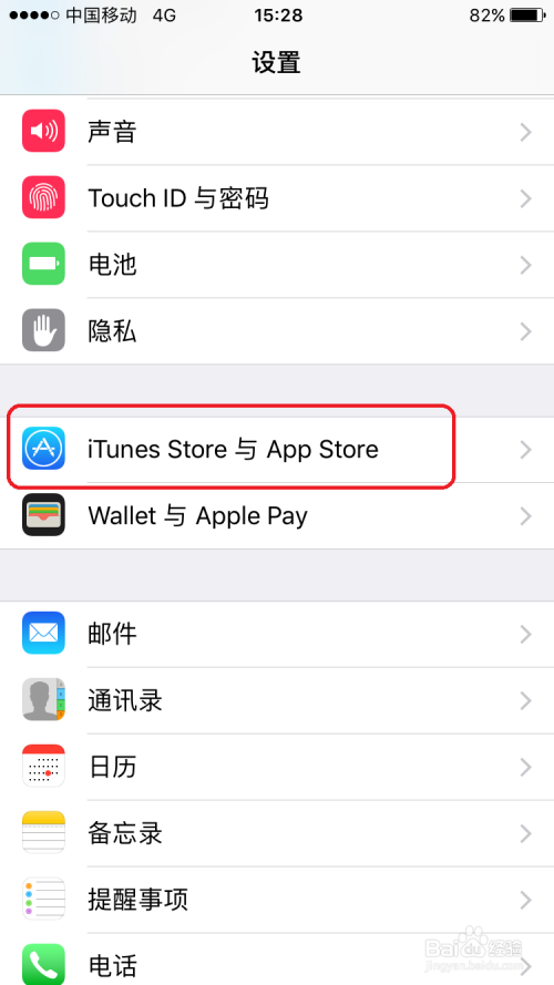 接下来打开设置选项里边的iTunes store与app store选项,如图所示: