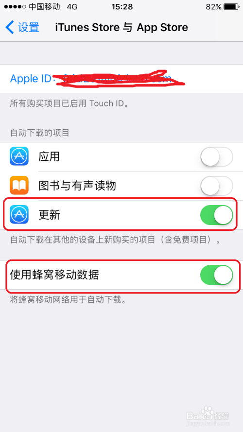 进入到界面里边之后,将下方的更新和利用蜂窝移动数据选项都打开,也就是处于开启状况,是绿色的开关状况。这里要申明下,这种状况,之后就会在移动收集下主动更新软件,所以必然要稳重选择。