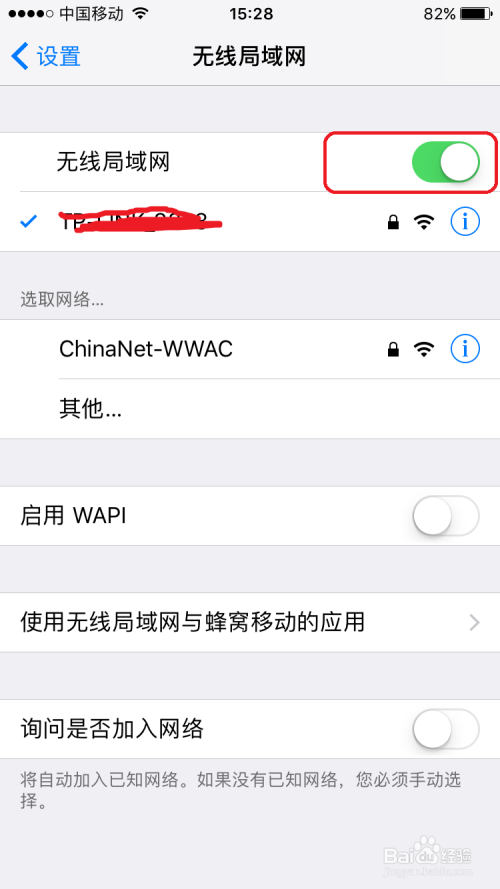 进入到设置界面之后,然后选择无线局域网,此时是毗连无线网的状况,这里要封闭它。