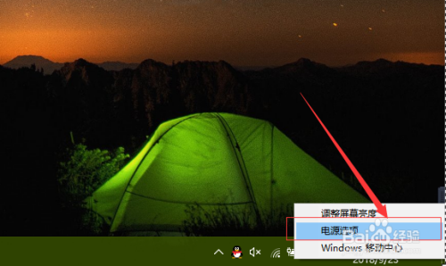 第一步、首先打开电脑,找到使命栏右下角的电源图标,如下图所示。