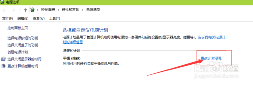 第三步、点击进入"电源属性",找到右边的"更改打算设置"。
