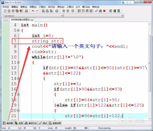 输入加密前的英词句子,保留在变量str中。