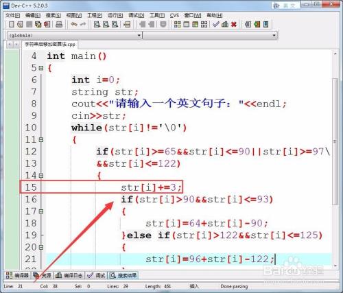 轮回读入英词句子的各字符,当字符为字母时后移3位,非字母则连结不变,若是后移的英文字母超出了字母仪围,则回到字母肇端再后移。