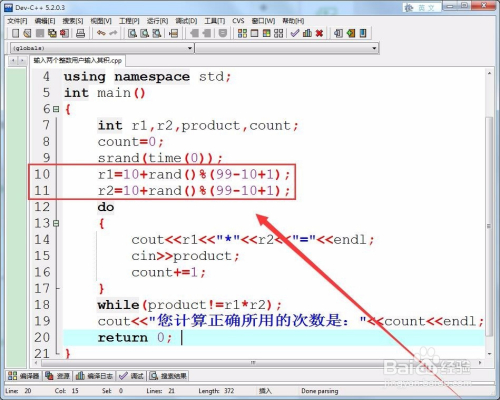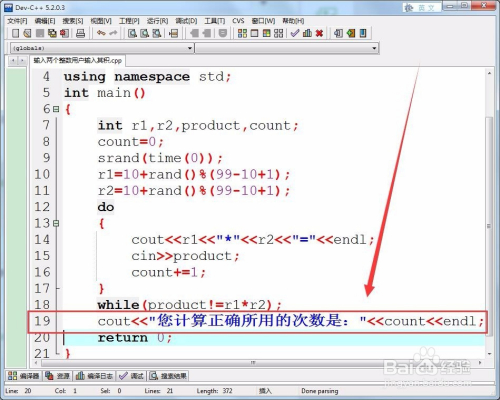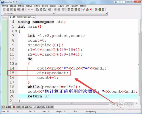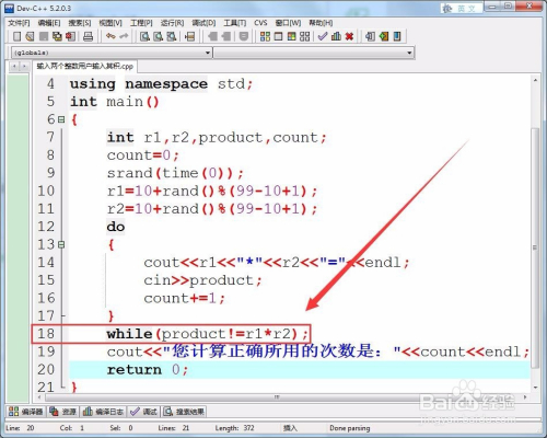 用do-while语句判定,用户输入的谜底,是否等于两个整数的积。