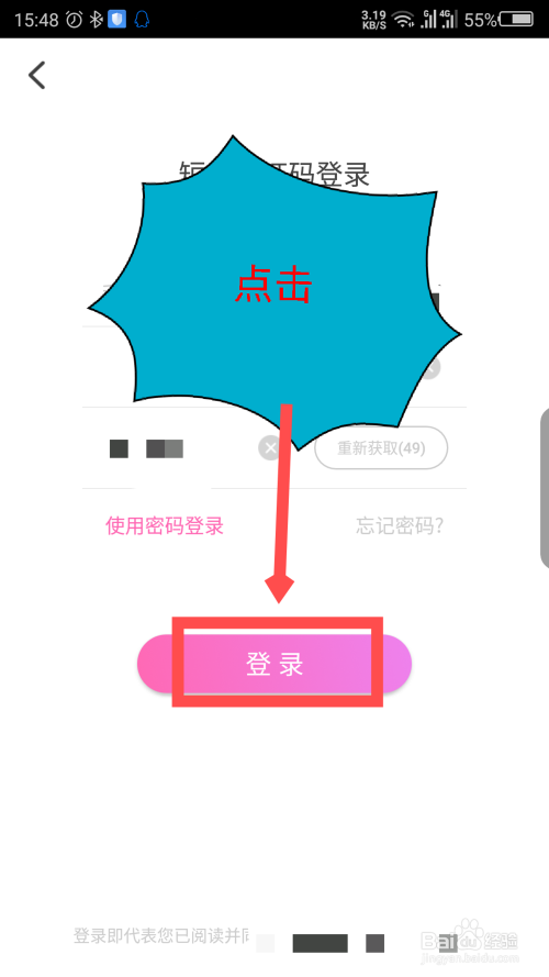 收到验证码后,填写到验证码栏,点击登录。如图所示