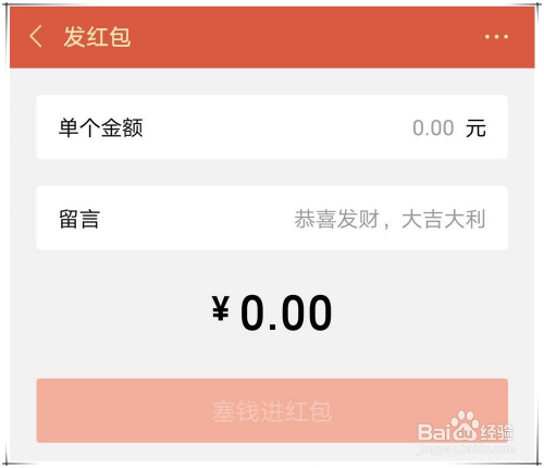 发微信红包步调四:若是是给小我发红包,那么会呈现以下界面:单个金额中填写你要发红色的金额数,留言就是红包上显示的文字。