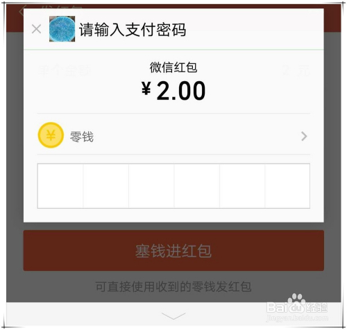 发微信红包步调五:不管是小我仍是微信群,输入金额、数目等后,点“塞钱进红包”,就会弹出微信付出窗口,输入准确密码,红包就会当作功发出。