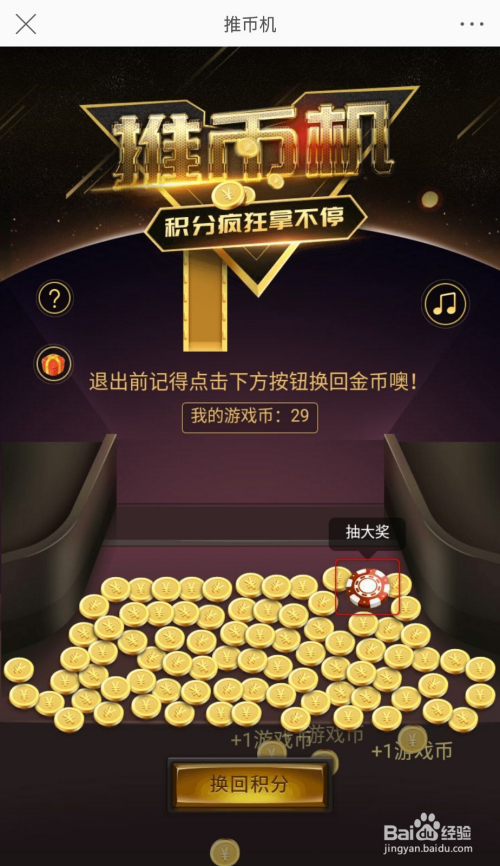 最后感觉赚的差不多了,还可以把游戏币兑换会积分。积分和游戏币的兑换比是1:1。(残剩要兑换的游戏币加上抽中的积分综合年夜于初始积分兑换的耗损才能是赚的)