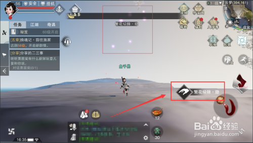 系统主动寻路前去地图上的标识表记标帜点,有的时辰很难找到繁花似锦,繁花似锦是埋没的一般都看不到,找到繁花似锦后,点击按钮【繁花似锦.隐】如图: