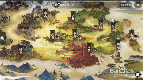 进入【繁花似锦.隐】的地图界面,在地图上找到标有繁花似锦的位置并点击,如图: