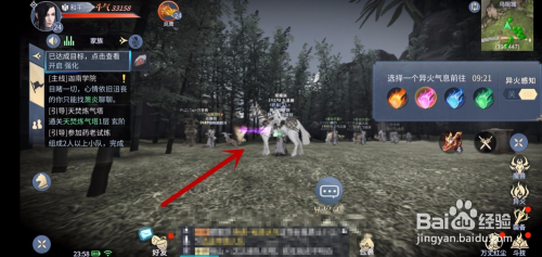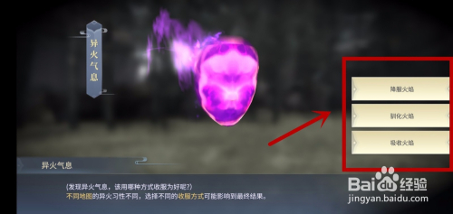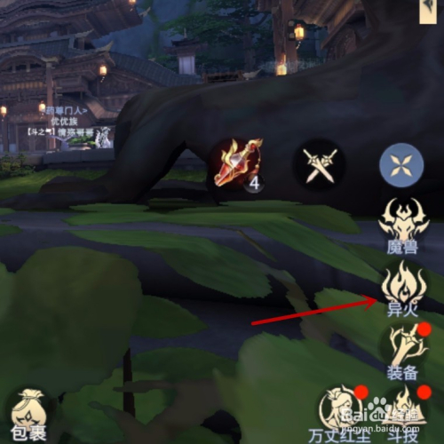 然后我们看到界面有带颜色飘动的火,我们就发现异火了,我们接近异火,点击一个异火,如图所示。