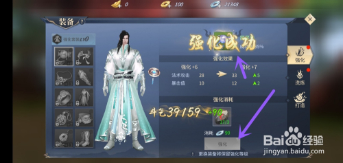 以上的前提和方式处置后,点击下面的(强化)按钮,可以看到装备强化当作功了,以至于让脚色能力增强。