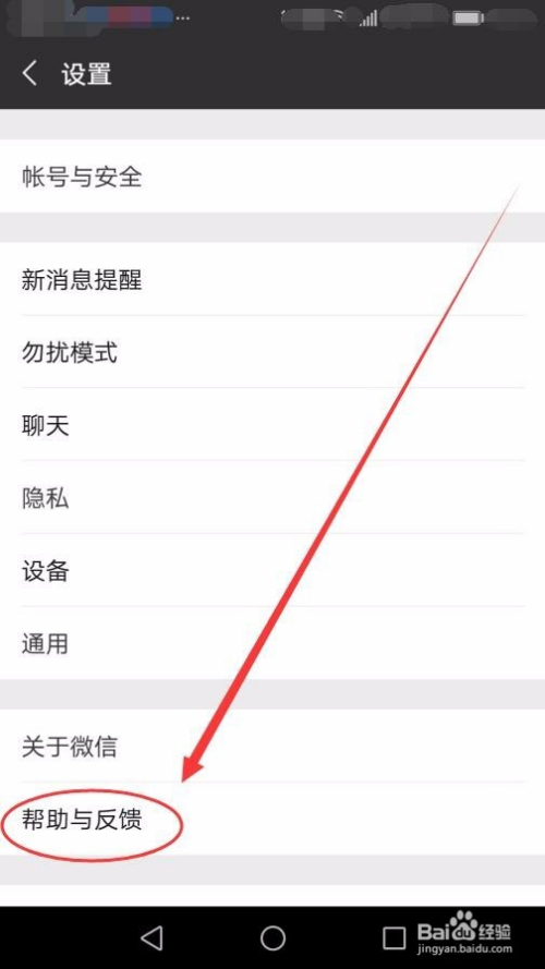 设置窗口的下方,找到帮忙与反馈选项,点击进入。