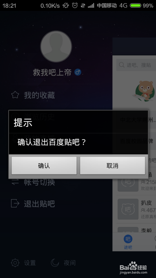 在新睁开的UI界面中,还增添啦退出贴吧的功能按钮了哦,只要点击“退出贴吧”,然后点击确认按钮就可以啦,小伙伴们从速尝尝吧。