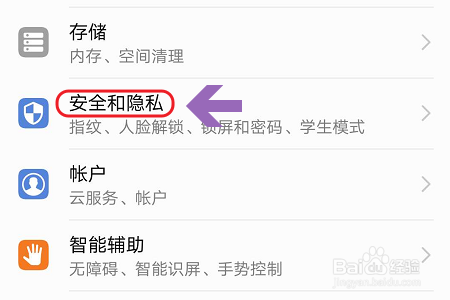 然后在设置页面里点击“平安和隐私”,接着我们即可看到此中的“锁屏和密码”这一项;