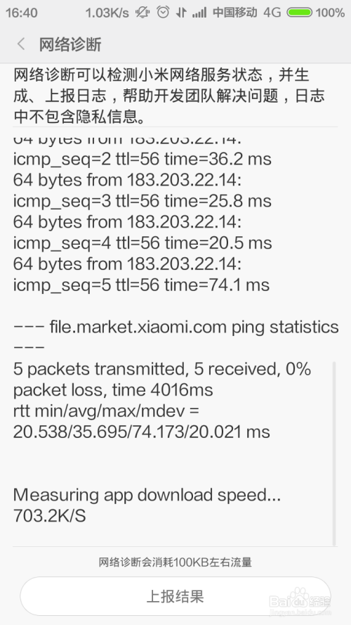 最后,将收集诊断成果可以上传到MIUI开辟团队,若是如图所示显示出了Download speed的大小,那就意味着手机的收集很正常,没有呈现问题哦。