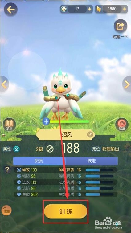 随便选择了一个妖精之后,进入单个妖精本家儿界面,界面下方有一个练习按钮,点击它。如图所示。