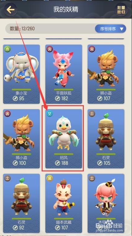 进入我们的妖精界面,里面有良多妖精,我们随便选择一个妖精,如图。