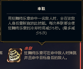 串联:狂舞终乐章可在射中仇敌时弹跳而且射中仇敌死后的方针