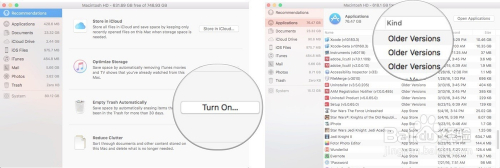 优化后的存储窗口左侧的目次列表暗示存放旧文件的文件夹,这些文件可以从Mac电脑中删除。