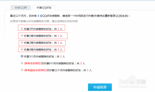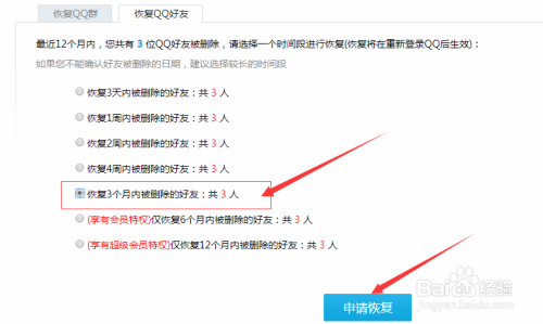 第五步、选择完恢复多久的老友,然后点击下面的"申请恢复"的按钮,就可以看到您QQ的老友都回来了。