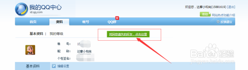 方式1.2:进入"我的QQ中间"界面之后,选择"资料"菜单,可以看到"找回您遗掉的老友,点击这里"。