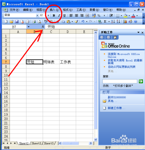 在excel的菜单栏找到“插入”并点击它。(如下图)