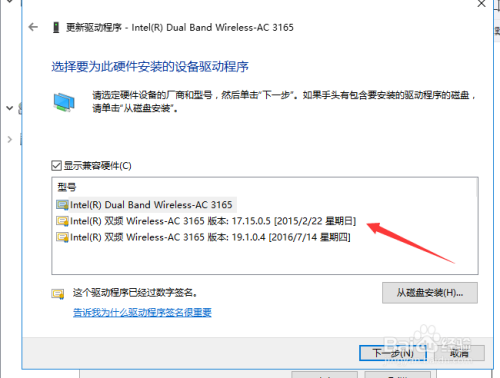 之后我们就会看见我们之前的网卡驱动的版本,这里选择最新版本,如下图所示: